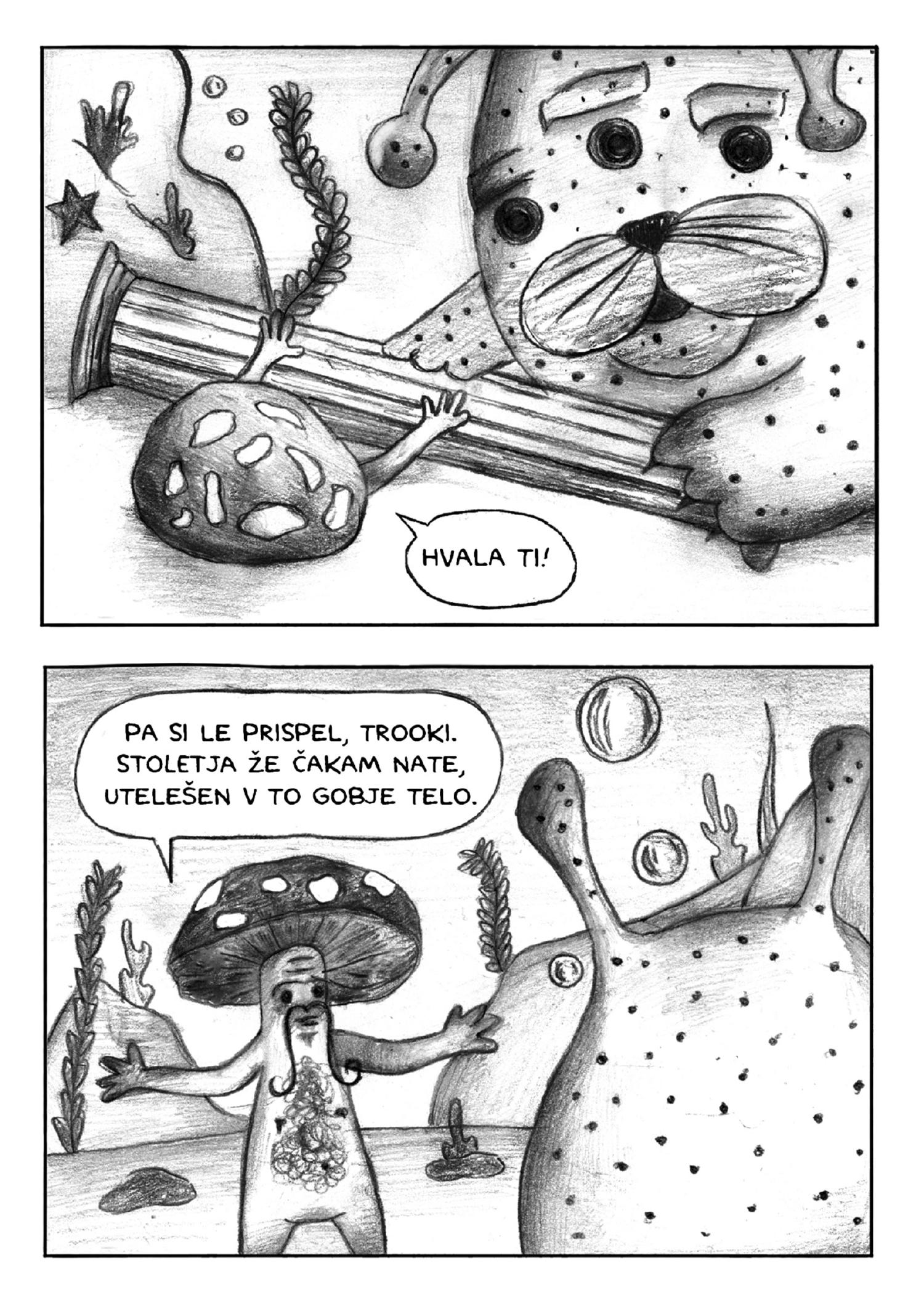 Pod mentorstvom Gašperja Rusa je ustvaril napeto, zabavno, fantastično pripovedko, ki se dogaja na planetu Zazamut. Nedolžen skok v ribnik sproži usodno verigo dogodkov, ki vodijo v epski spopad za planet Zazamut. Žabec pravi, da bo vse v redu, če bosta Blorposlav in Zaza le sledila njegovim navodilom. Pa bosta povsem običajen nezemljan in njegov trooki maček kos tej nalogi?